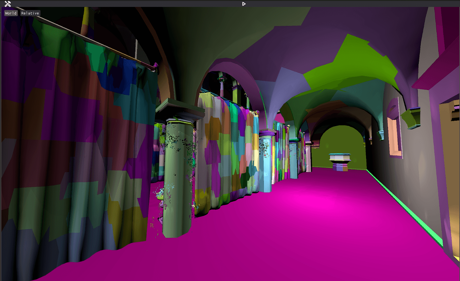 Instead of looping over every entity in the scene every frame, we generate draw calls for a mesh when it is added to the scene, these are stored in multiple arrays, called 'buckets'. We have different buckets to separate meshes by shader, and draw order, for instance we have an opaque mesh bucket, a transparent mesh bucket, and an alpha tested mesh bucket.